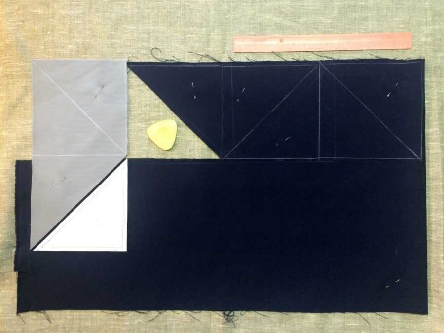 - Выкроите согласно разметке. Ткань раскраиваем на квадраты с припуском на шов 52 на 52 см с каждой стороны