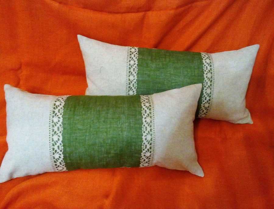 - Можно также украсить ее фестонами, которые следует нашивать также по лицевой части вверху и внизу подушки.