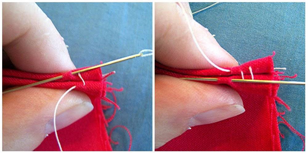 Потайной шов выглядит так. Протянуть иглу первый раз нужно со внутренней стороны, чтобы заметен он был только в одной точки.