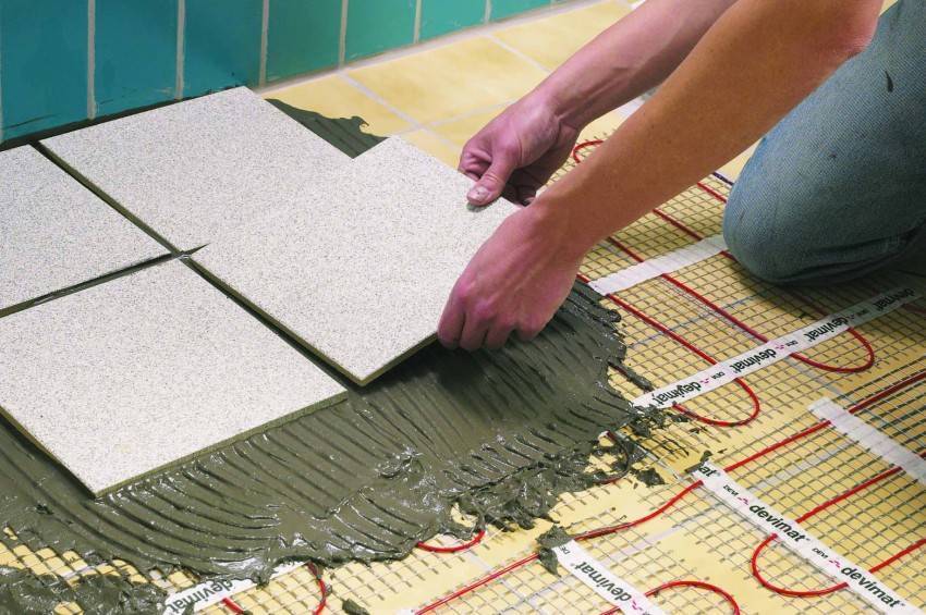 Отдельно стоит поговорить о стяжке пола в ванной под плитку. Бывает, что приходится устраивать её прямо на старую плитку, которую невозможно снять быстро. В таких случаях применяют грунтовочный состав «бетоноконтакт». Получается отличный, промежуточный слой, позволяющий стяжке хорошо сцепиться с основанием.
