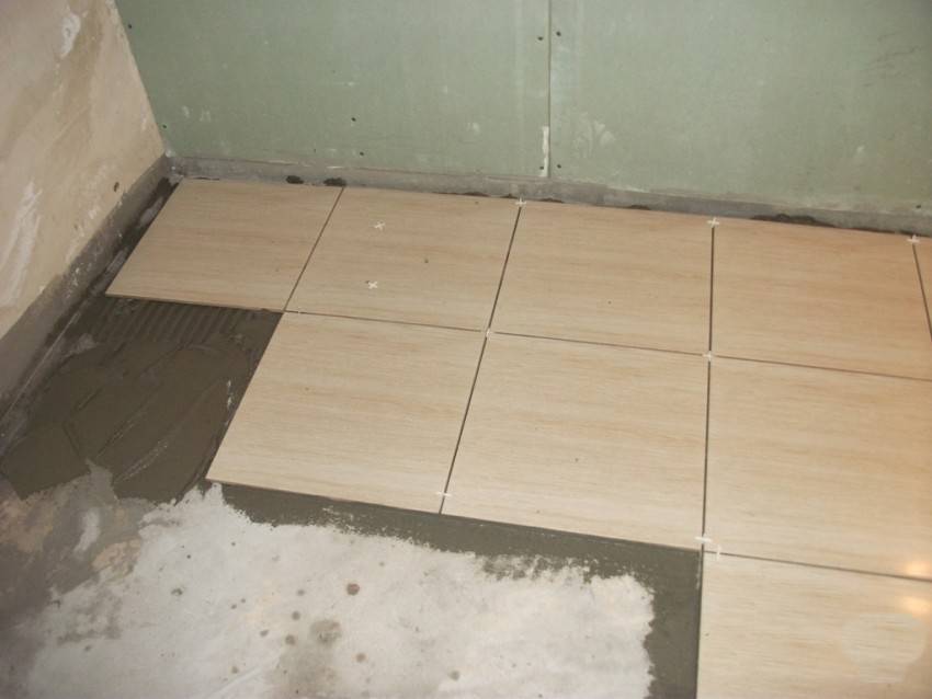 В-четвёртых, когда стяжка достаточно схватиться, начинают укладывать плитку. По технологии, внимательно соблюдая порядок раскладки.