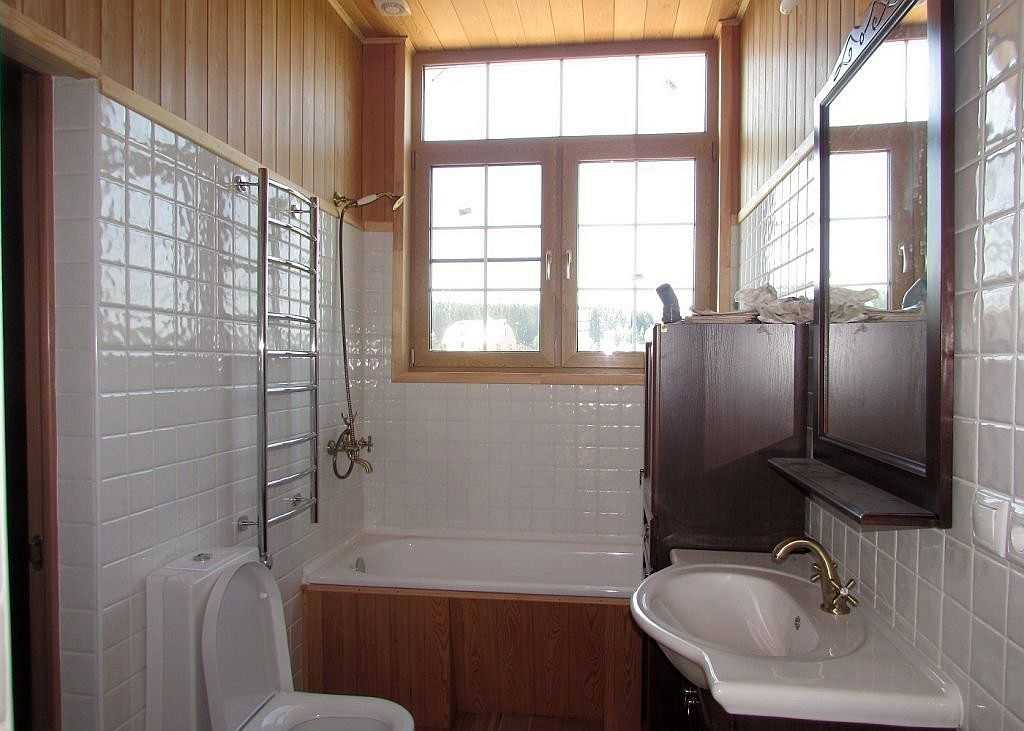 Прованс. Характеризуется отделкой поверхностей сайдингом или вагонкой в светлых оттенках. Дополнительно облицовочный материал покрывают лессирующими составами, которые не скрывают текстуру дерева. Огромной популярностью пользуются ванные, где оформление выполнено в белоснежном цвете. В качестве напольного покрытия следует выбирать доски или терракотовую плитку.