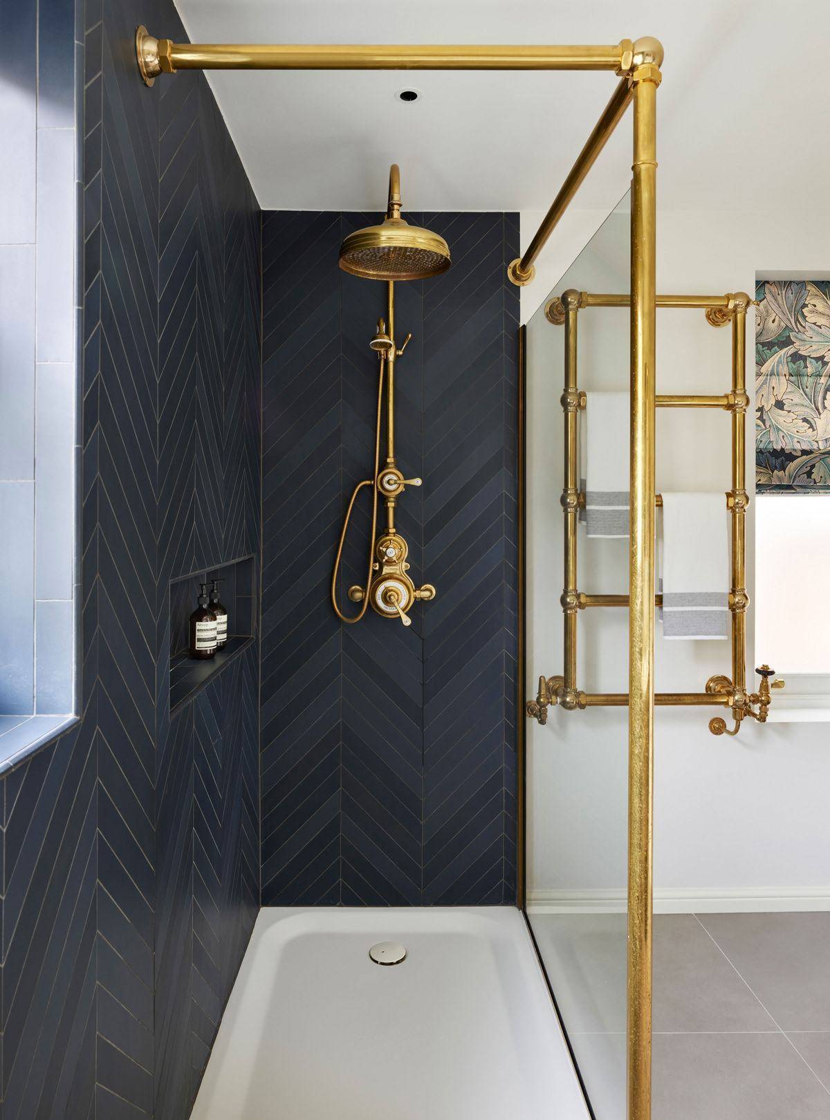Если вы не безразличны к латуни, нравятся батареи и другие предметы из данного материала для ванной, почему бы не завершить дизайн ванной комнаты таким полотенцесушителем? Единственным недостатком этого решения является то, что все латунные изделия постепенно меняют цвет и требуют дополнительного обслуживания, чтобы сохранить первоначальный внешний вид.