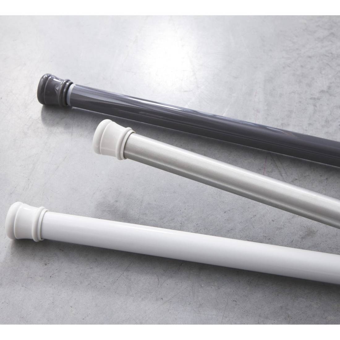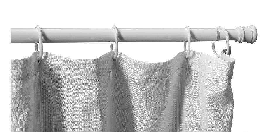 Тип крепления. Этот момент необходимо учитывать еще до совершения покупки. Требуется определить форму и размер штанги, соответствующие размерам и индивидуальной планировке ванной комнаты. Универсальный и практичный метод крепления штор из текстиля — с использованием раздвижной штанги.