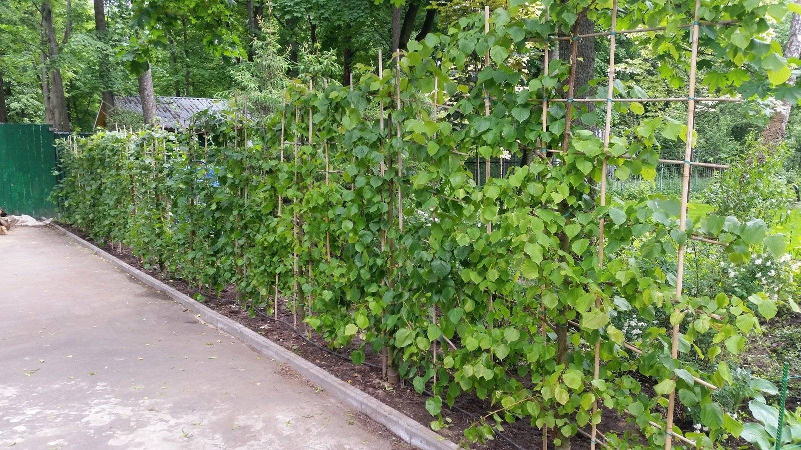 Наиболее походящие растения для шпалерных конструкций – ива, малина, вяз, боярышник, лимонник, яблоня и др. Такой «плоский сад» занимает минимум места, а в высоту может быть от 25-60-сантиметрового бордюра до настоящей «живой стены», более двух метров «ростом».