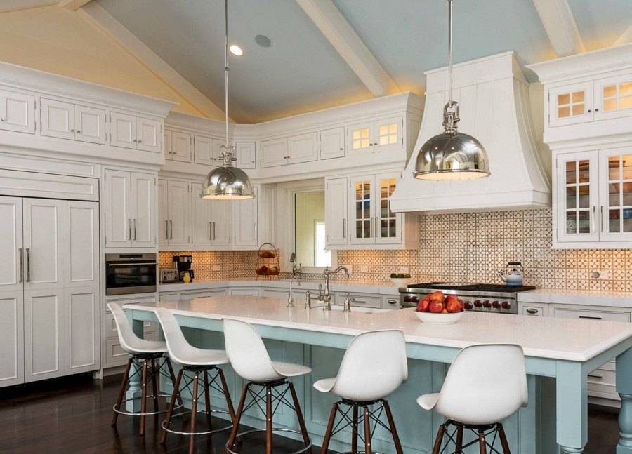 Такой вариант обычно предназначен для высоких и просторных кухонь. Его несколько ступеней-уровней требуют достаточно места. Но зато это и самый декоративный вариант из всех. Его цвет и форма могут быть различными.