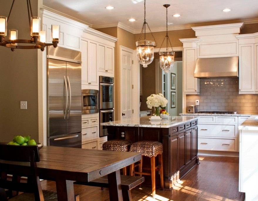Некоторые дизайнеры рекомендуют для оформления кухни пеструю бежевую гамму. Она практична и прекрасно сочетается со всеми другим цветами, в том числе яркими.