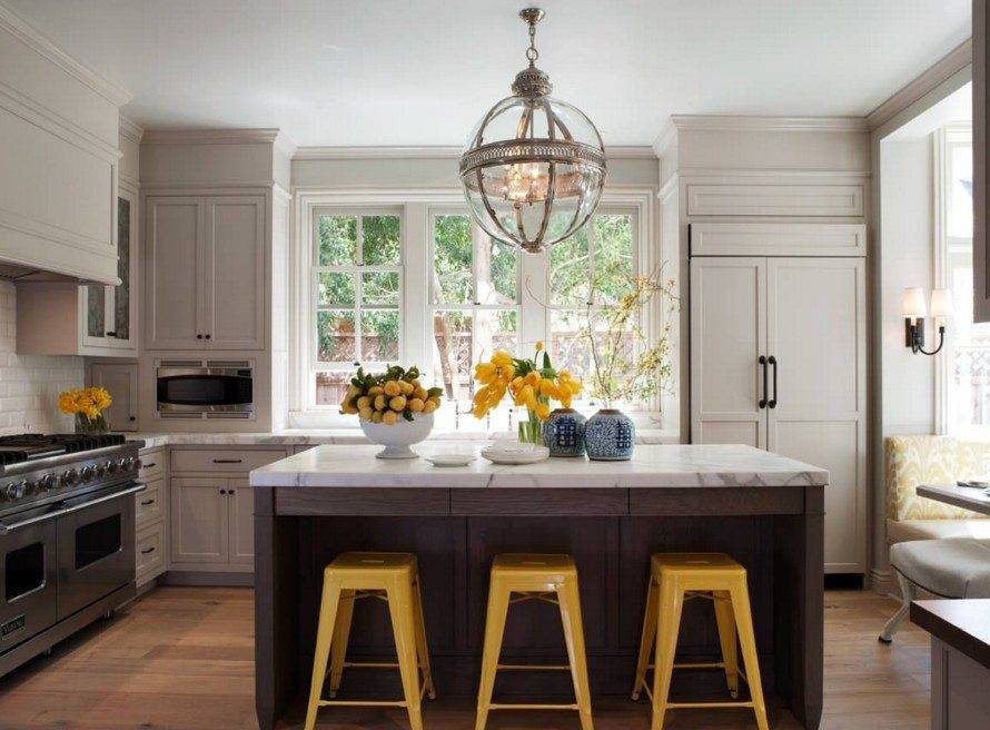 Одноуровневый потолок, сливающийся со стенами – это классическое решение, которое кому-то покажется скучноватым. Дополнить его поможет домашний текстиль, мебельная фурнитура, витражные или стеклянные вставки на дверях, столешница, гарнитур и другие детали интерьера.