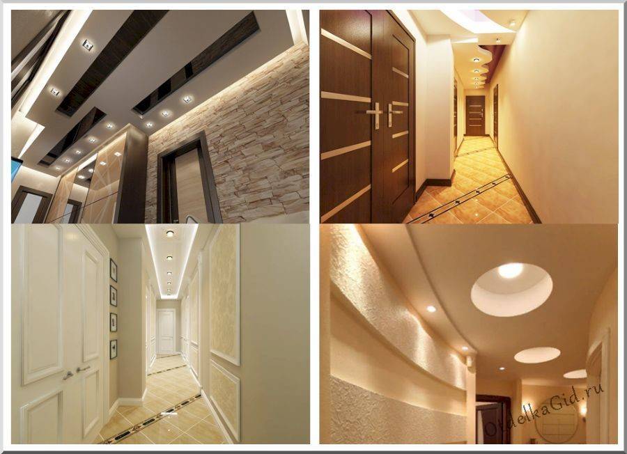 Вариант, как и чем дополнить двухуровневый простой или фигурный потолок для коридора: