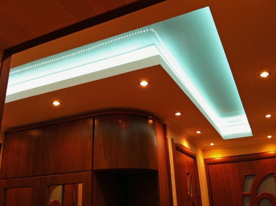 Красивый потолок из гипсокартона с подсветкой: фото в коридоре