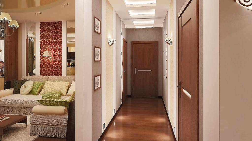 - свет не должен быть тусклым (это неудобно, да и коридор будет казаться зрительно меньше, чем есть) или же сильно ярким и режущим глаза, причем желательно, чтобы не было сильного контраста между уровнем освещения коридора и соседних комнат;