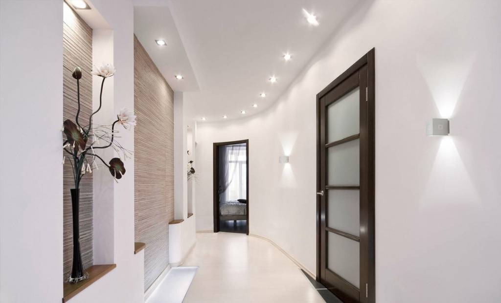 Конфигурации коридоров различаются благодаря современному подходу к строительству. Можно встретить самые разные типы и формы прихожих, от длинных и зауженных до вытянутых и просторных. Коридоры могут быть ровными или изогнутыми, но при этом чаще всего они остаются узкими. Как же правильно осветить такое пространство?