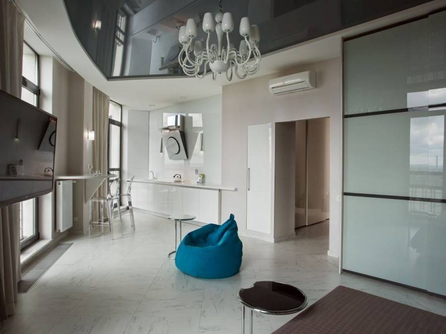 - Глянец. Для современного дизайна характерно использование современных материалов. Обычно это стекло, сталь, пластик, бетон – это позволяет воплотить множество дизайнерских идей.