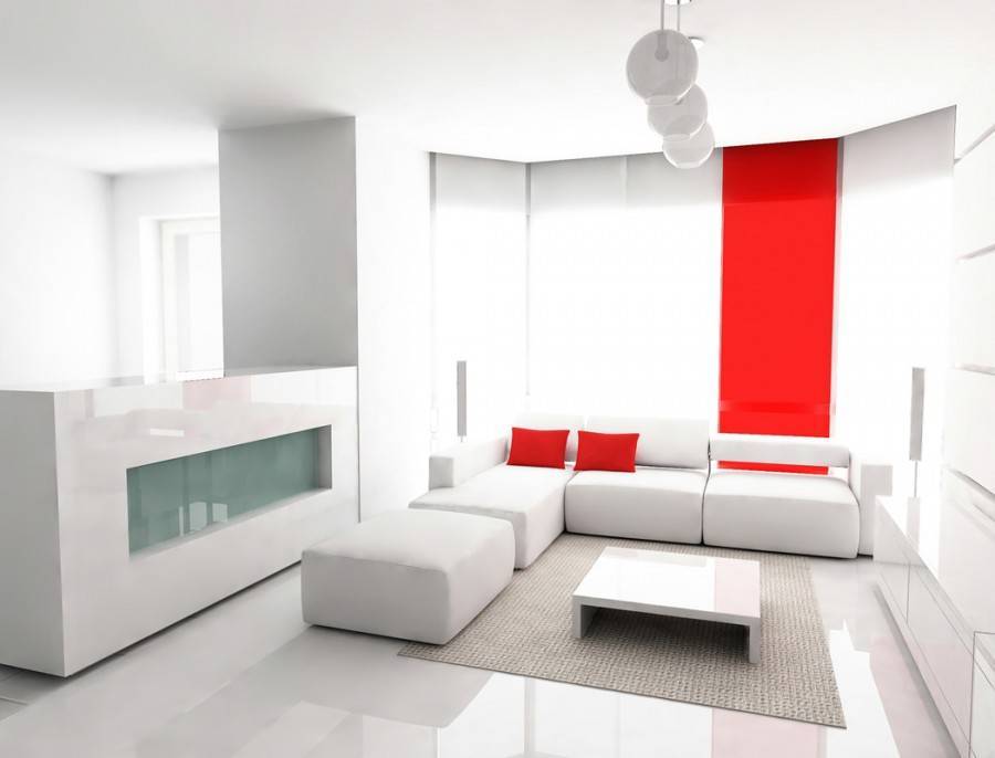 Минималистический дизайн подходит помещениям любой площади. Особенно выгодно его использовать в небольших квартирах для расширения и оптимизации пространства. Например, дизайнеры часто используют объединенную кухню-гостиную в стиле минимализм. Функциональное зонирование пространства в данном случае осуществляется путем сочетания контрастных отделочных материалов или же установки барной стойки.