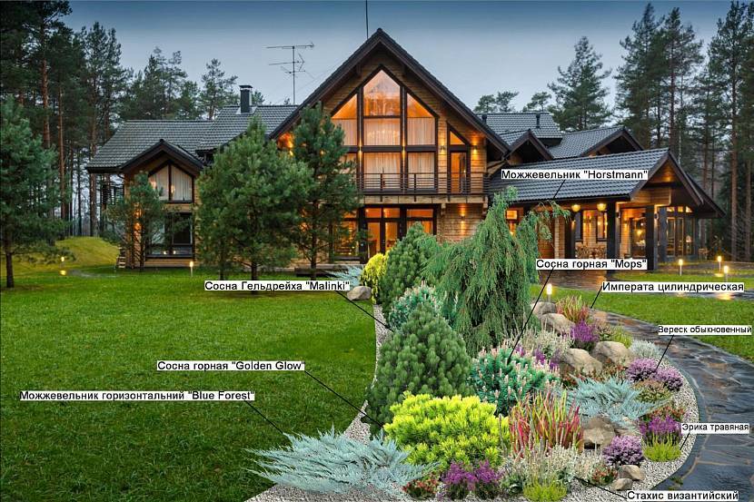 Ландшафтный дизайн участка 8 соток тоже зависит от жилого дома, в этом случае от выбранного архитектурного стиля.