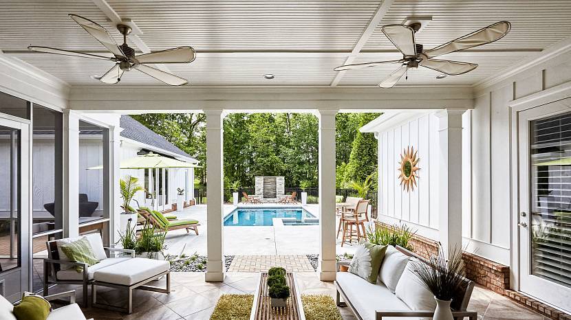 - Спортивная зона. Может содержать как игровую площадку (теннисный корт), так и тренажеры, скрытые под навесом. Некоторые объекты (например, бассейн) могут менять свое назначение, превращаясь в оригинальное место приема гостей.