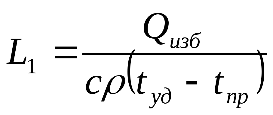 теплоемкость воздуха, Дж/(кг-К);с=1,2кДж/(кг·К); ρ —плотность воздуха,