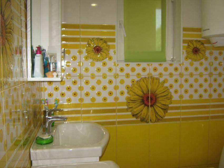 Совет. Создание такого рисунка не обходится без лишнего расхода плитки, так как изделия нужно обрезать, чтобы придать им необходимую форму. Поэтому лучше к рассчитанному для площади вашей ванной количеству плитки прибавить еще 10-15% запаса.