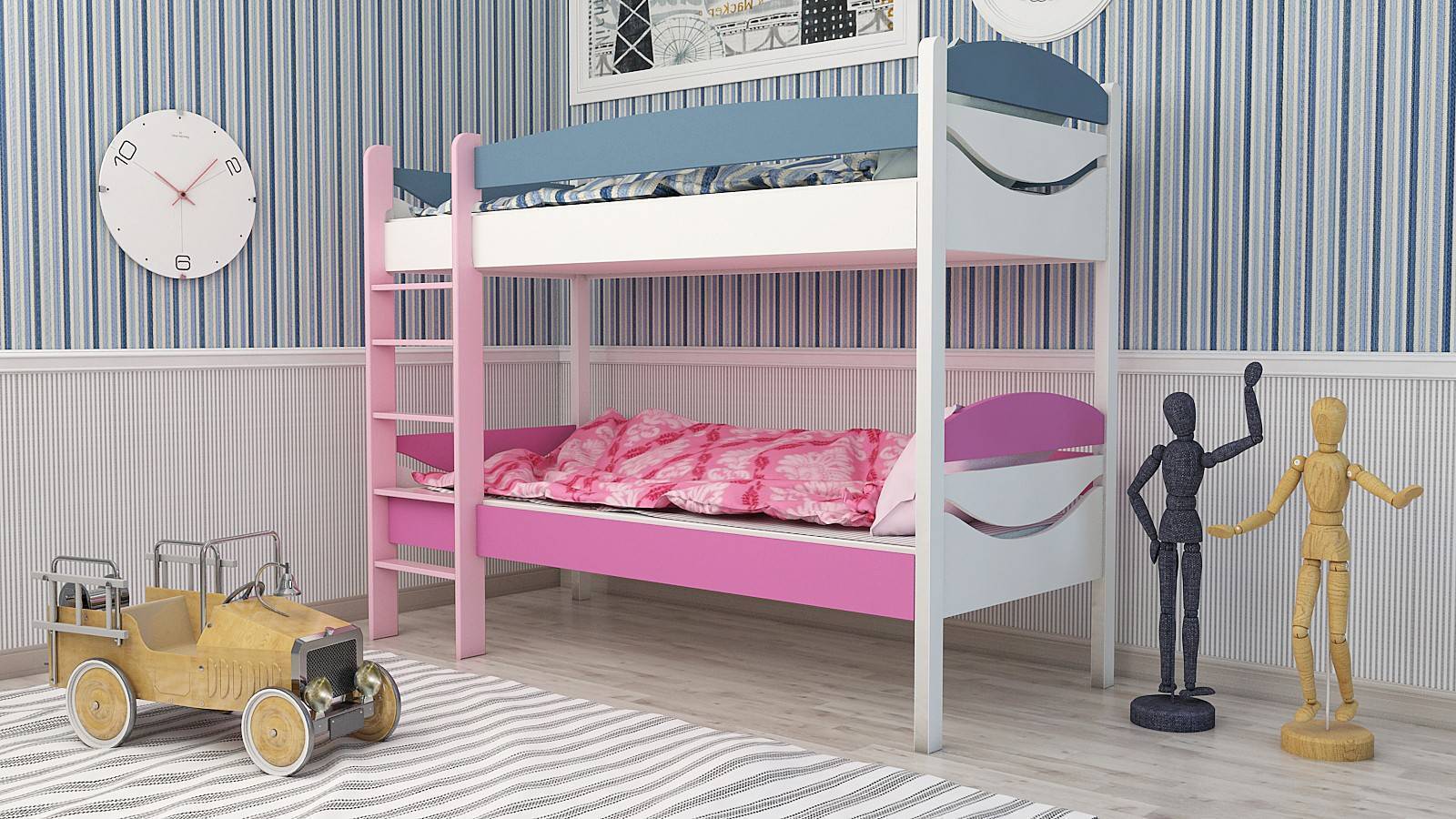 - Должна быть безопасной — без острых углов и с надежной фурнитурой. Верхний ярус сдвоенных кроватей оснащается перилами.