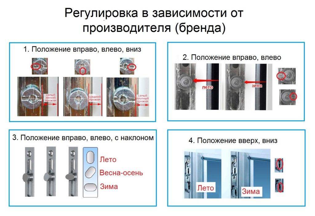 Производители стеклопакетов комплектуют свои изделия разными видами фурнитуры, и регулировка каждого может иметь некоторые отличительные особенности.