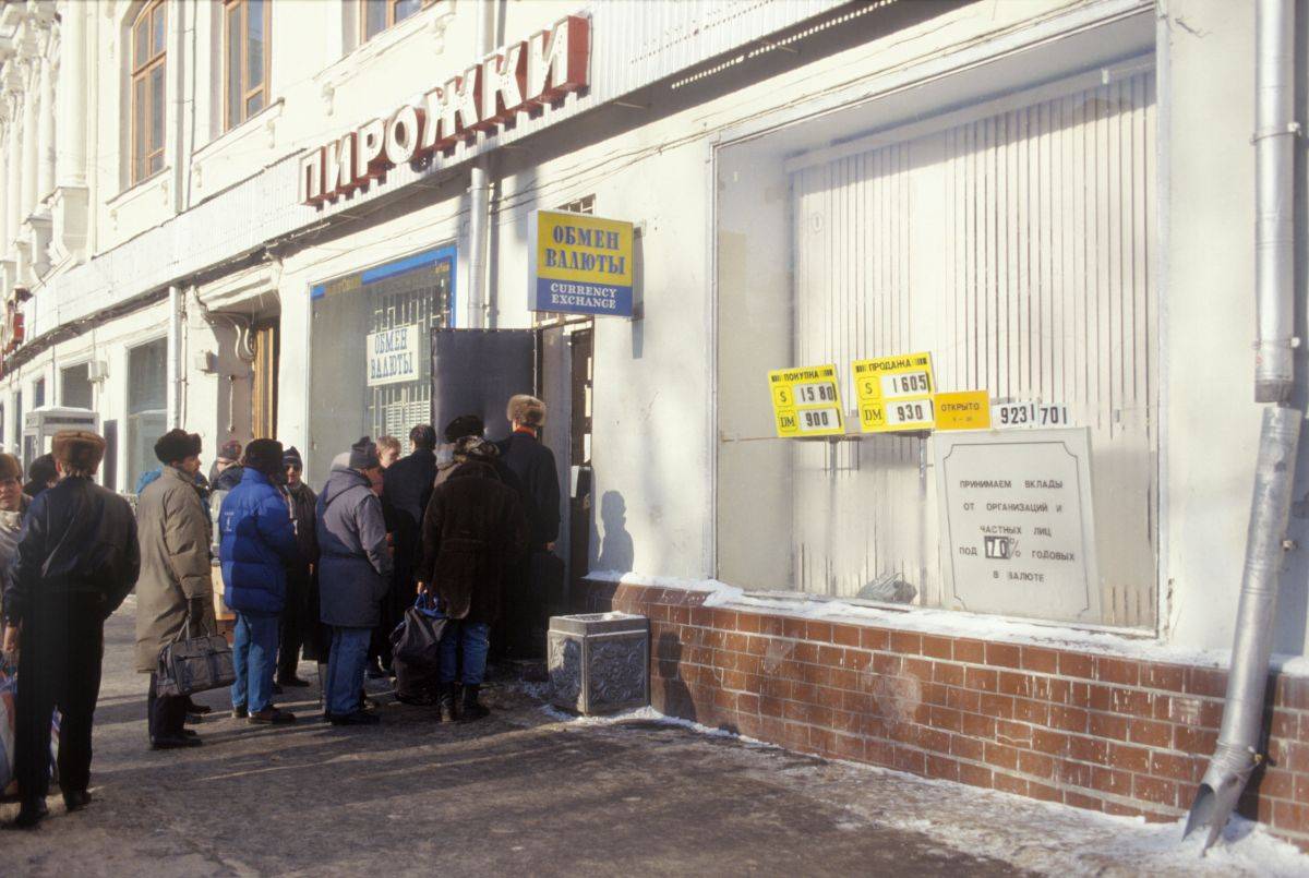 Очередь у обменного пункта в Москве, 1994. РИА Новости / Игорь Михалев