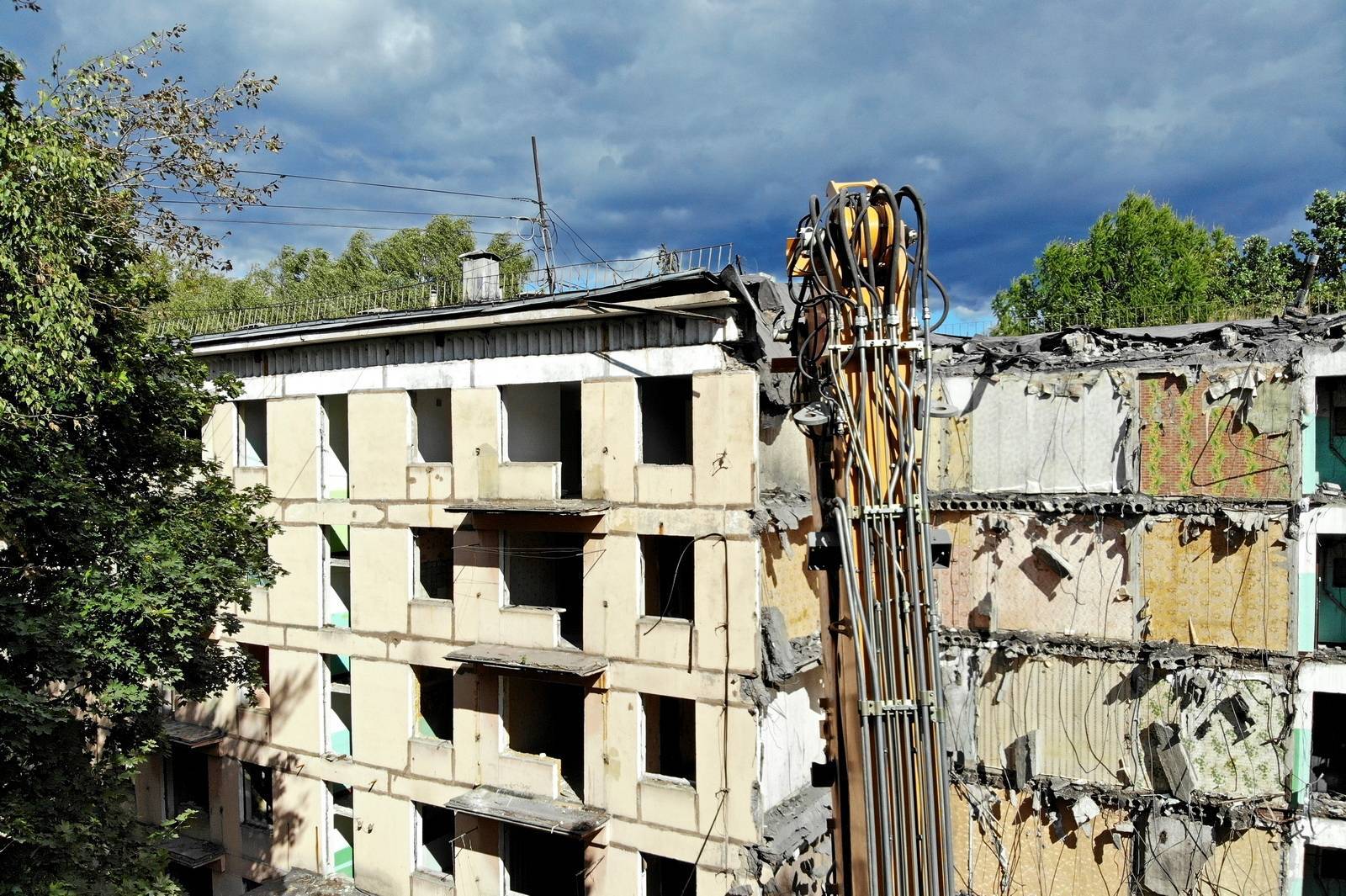 Пятиэтажный дом находится на ул. Константина Федина, д. 5 в районе Северное Измайлово на востоке столицы. Его площадь составляет 3,5 тыс. кв. м, высота – около 15 м. Переселение завершилось 14 июля, а уже 1 августа здание начали готовить к демонтажу.