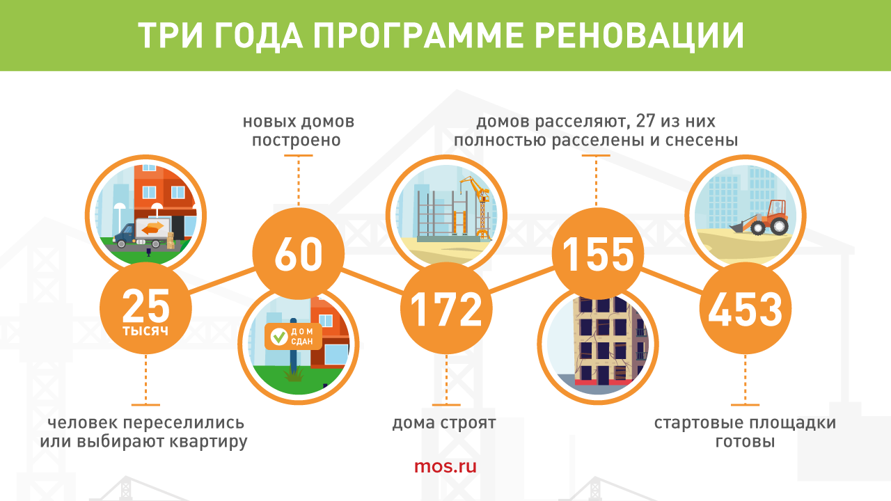 Реновация стала решением одной из самых главных проблем, которые волнуют москвичей, — переехать из ветхого и устаревшего жилья в просторные, качественные, комфортные квартиры. Поэтому большинство горожан одобряет программу. И за три года ее реализации по решению собрания жителей ни один дом не вышел из программы.