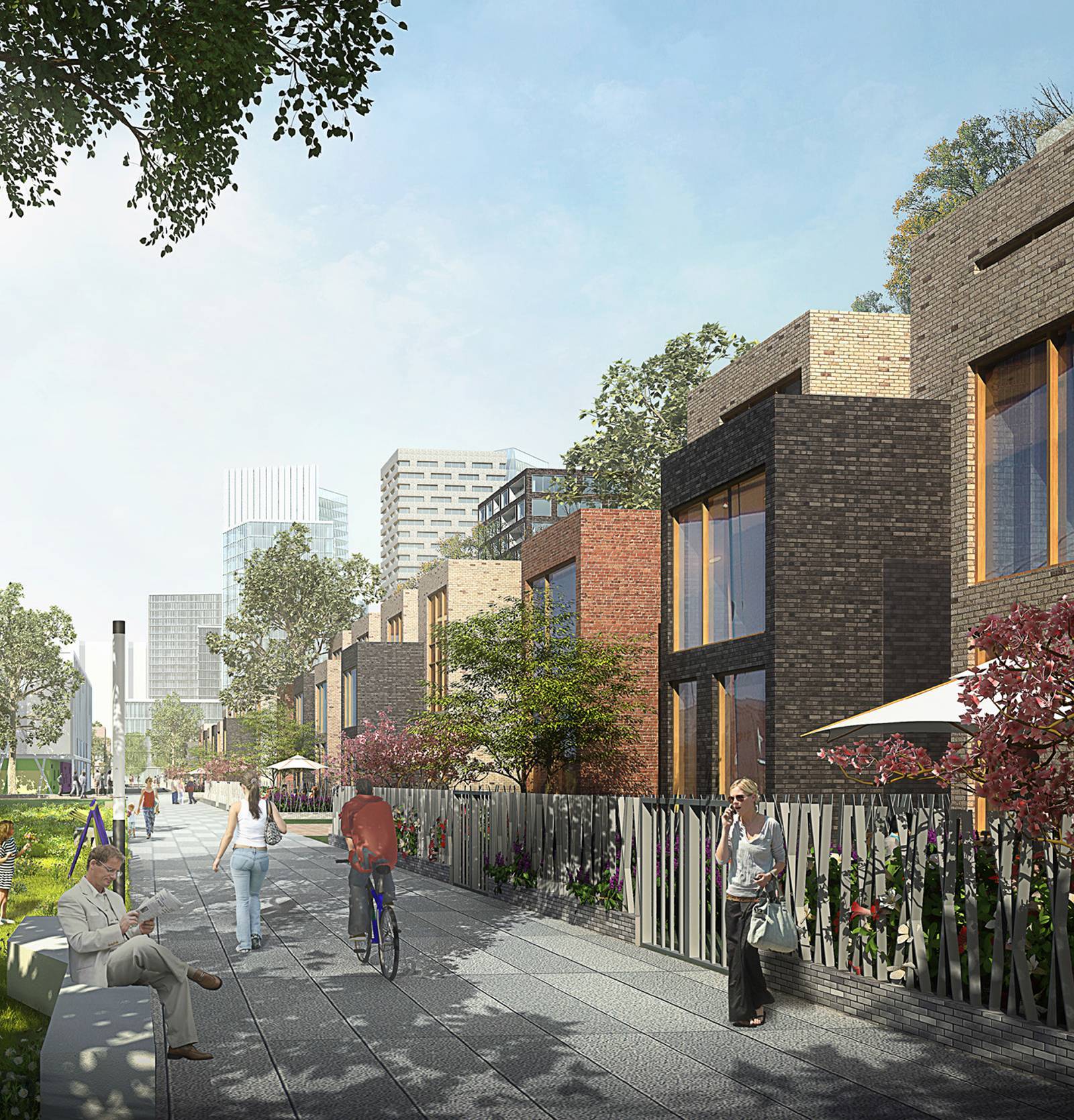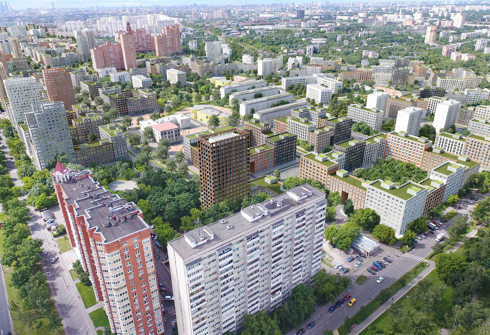 Команда предлагает создать зону таунхаусов с вкраплениями небоскребов. Первые расположатся ближе к Волгоградскому проспекту, а вторые – к парку. Это сделано для того, чтобы как можно больше жителей имело вид из окон на деревья. В каждом из урбан-блоков будут находиться торговые площади, учебные заведения и спортивные площадки.
