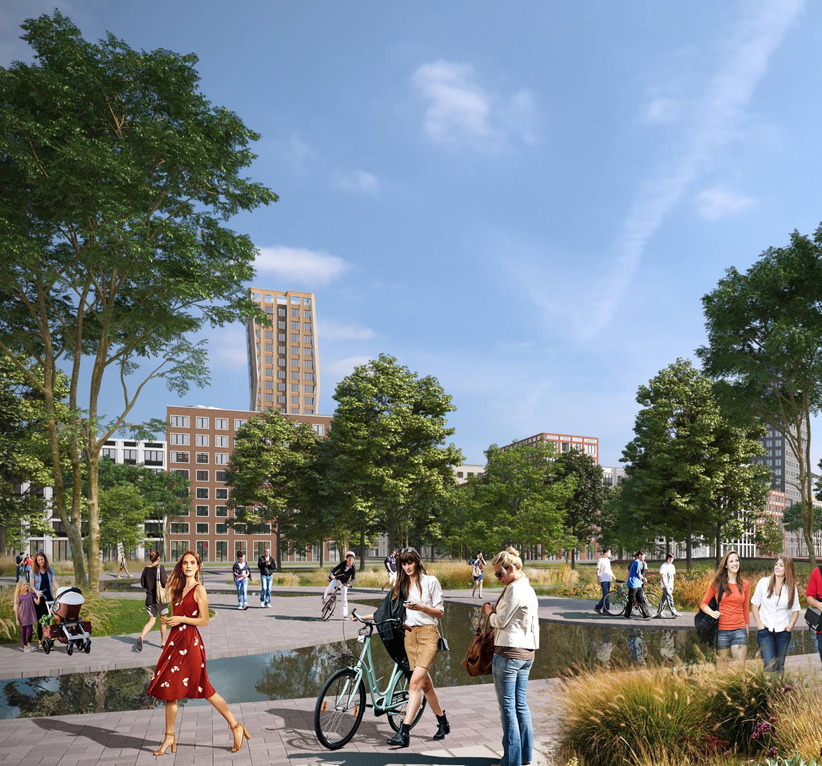 Большой парк станет «зелеными легкими» каждого квартала и будет простираться на 2 км. Там расположатся школы, игровые площадки для детей и зона для прогулок. Зеленая зона предполагается и вдоль зданий небольшой этажности, где не будет автомобилей.