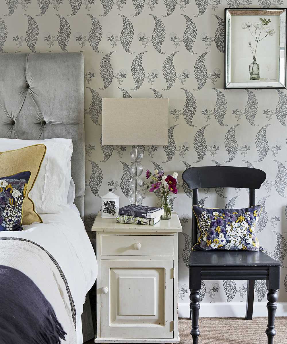 Краска или фрески. Это покрытие прекрасно сочетается с обоями. Однотонные стены могут показаться слишком скучными. Их могут оттенить полосы обоев или роспись на стенах. Фрески в спальне привнесут в помещение пространство и сделают его более оригинальным.