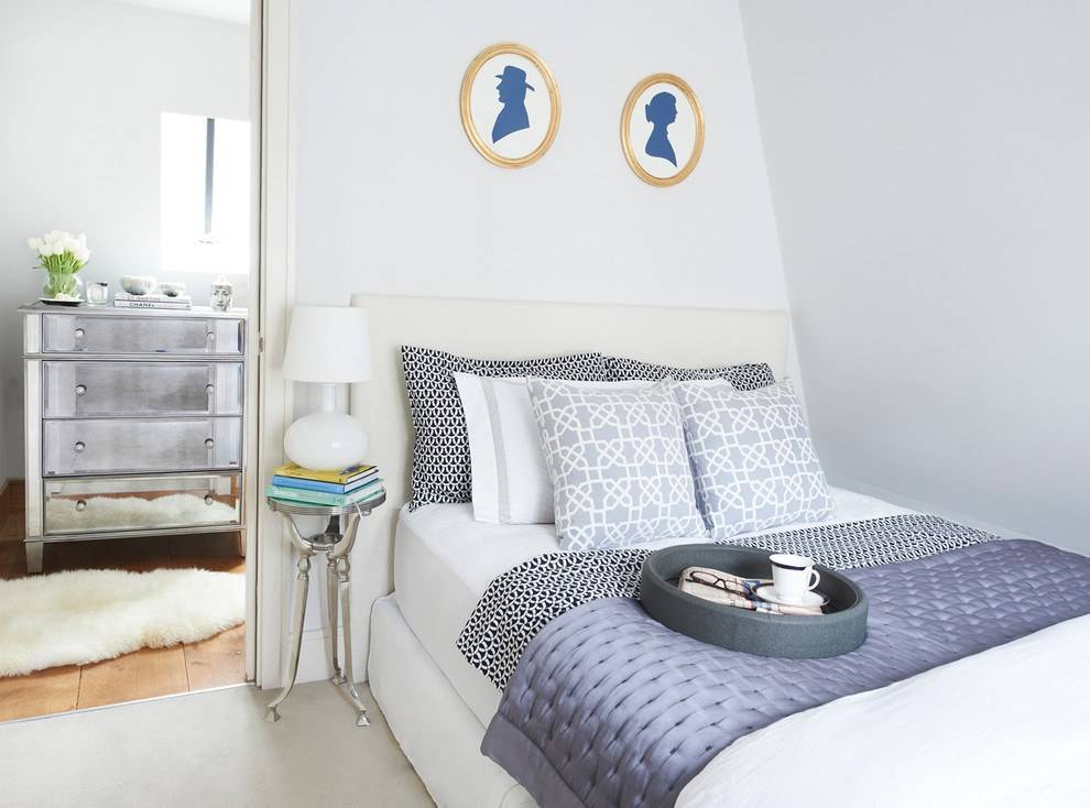 Для расширения пространства маленькой спальни дизайнеры рекомендуют использовать светлые тона в оформлении стен.
