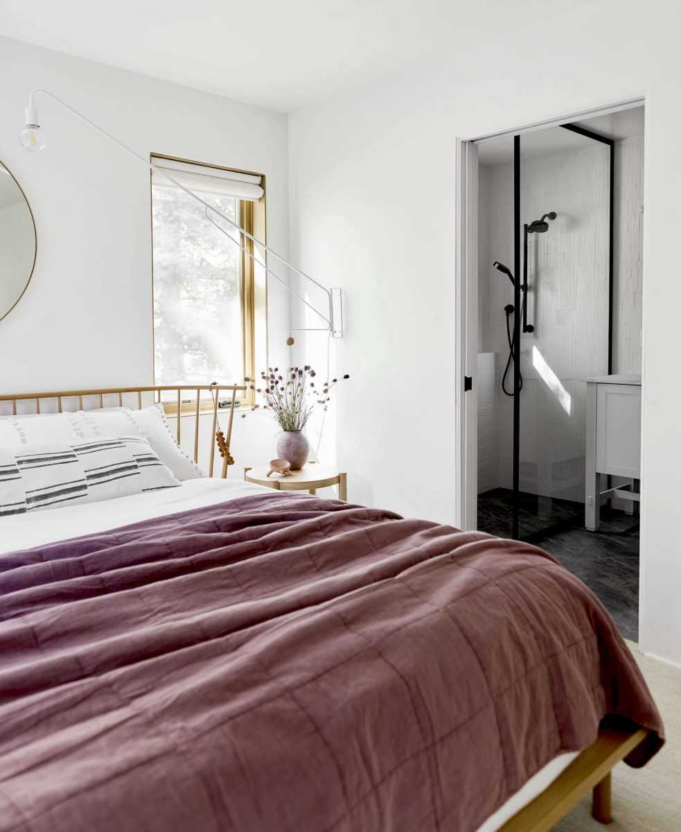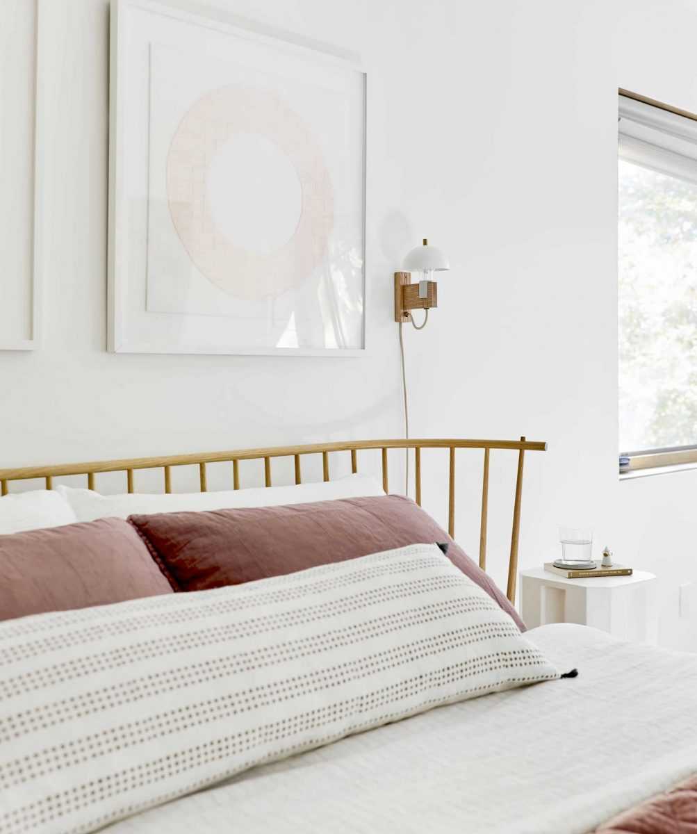 Изголовье часто делают мягким, а вокруг кровати создают целый «ансамбль», состоящий из тумбочек, светильников над ними, банкетки в изножье, полога и подзора.