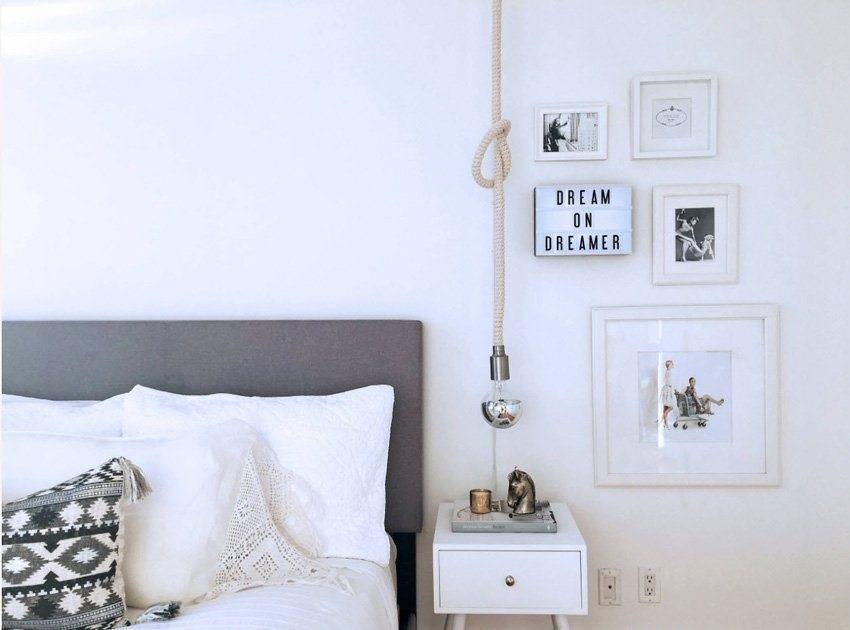 Гламур, красочность и множество украшений не всегда обеспечивают ожидаемый результат. Спальня — это место, расположение которого требует продуманного дизайна, а также стиля. Комната идеально подходит для простоты и минимализма, которые могут быть прекрасно дополнены одним, но оригинальным акцентом. Будьте креативными и адаптируйте обычный объект к исключительному интерьеру. В этой роли почти все будет работать. Используйте стильный стул или прикроватный столик, который станет отличным украшающим элементом. Расположите на него книги, лампу или декоративную коробку, которая будет не только украшением, но и практичным решением для хранения безделушек. Рассмотрите зеркало, которое придаст спальне уникальное выражение. Прикрепите на стену полки, смонтированные необычным способом. Дополните пространство освещением в виде гирлянд. Таким образом, с небольшим количеством силы и денег вы сделаете необычное украшение интерьера спальни самостоятельно из самых простых предметов.