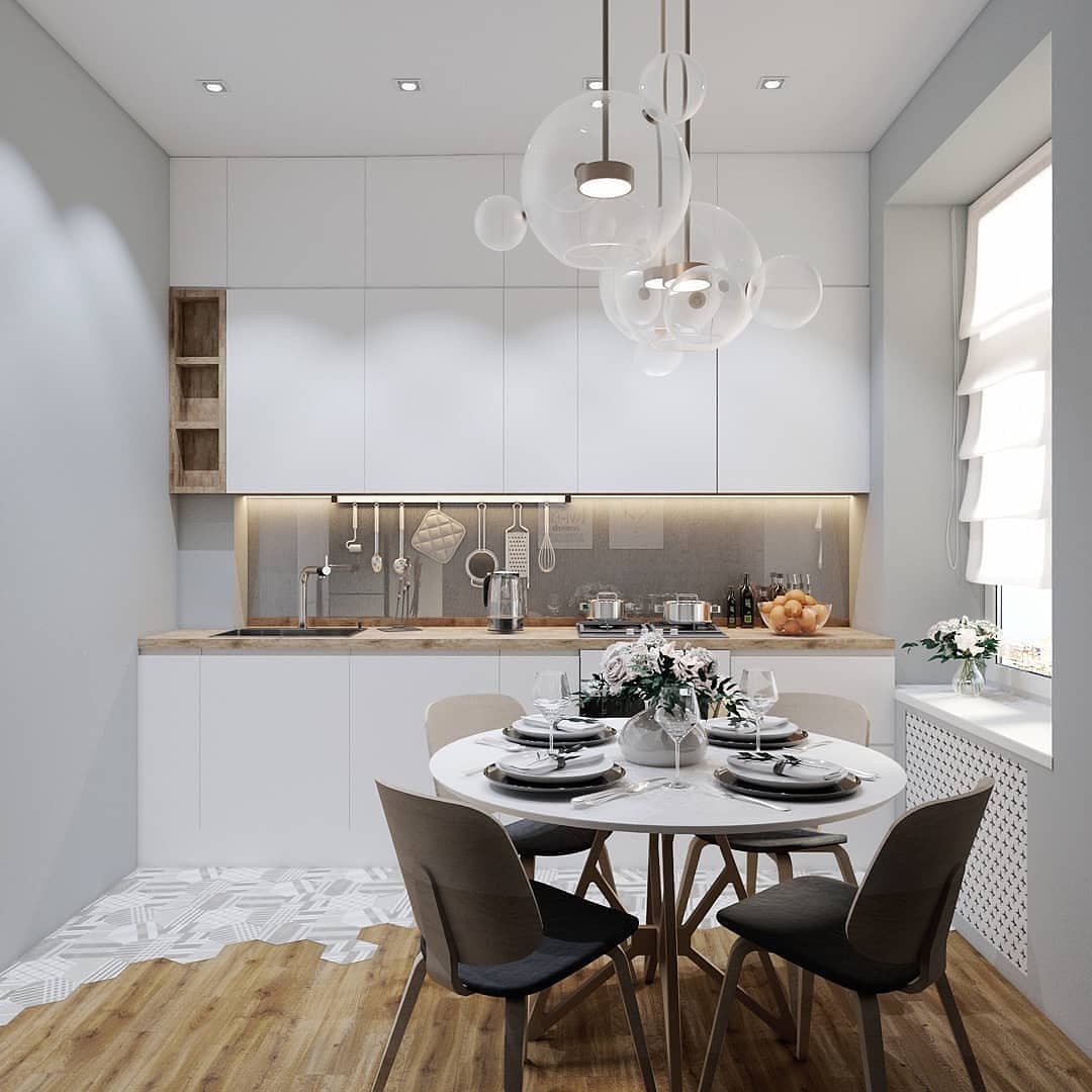 слишком длинный тюль. Красивее всего смотрятся шторы, достигающие почти самого пола, но на кухне такой вариант в большинстве случае неуместен. Длинный тюль преграждает нормальный доступ к подоконнику, может путаться под ногами во время приготовления блюд, быстрее пачкается, а на маленькой кухни такое решение редко будет уместным. Если же кухня приличных размеров, а около окна расположена обеденная зона, то длинный тюль будет кстати;