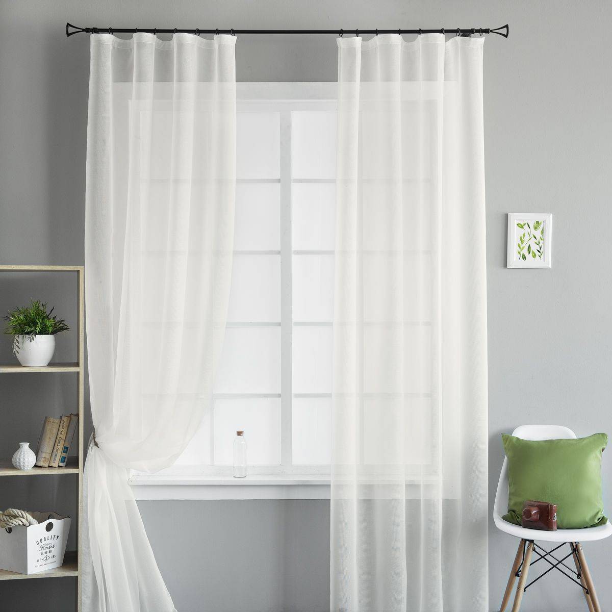 Белые занавески, в отличие от цветных штор, зрительно увеличивают помещение, но использовать их без дополнительных элементов декора нежелательно.