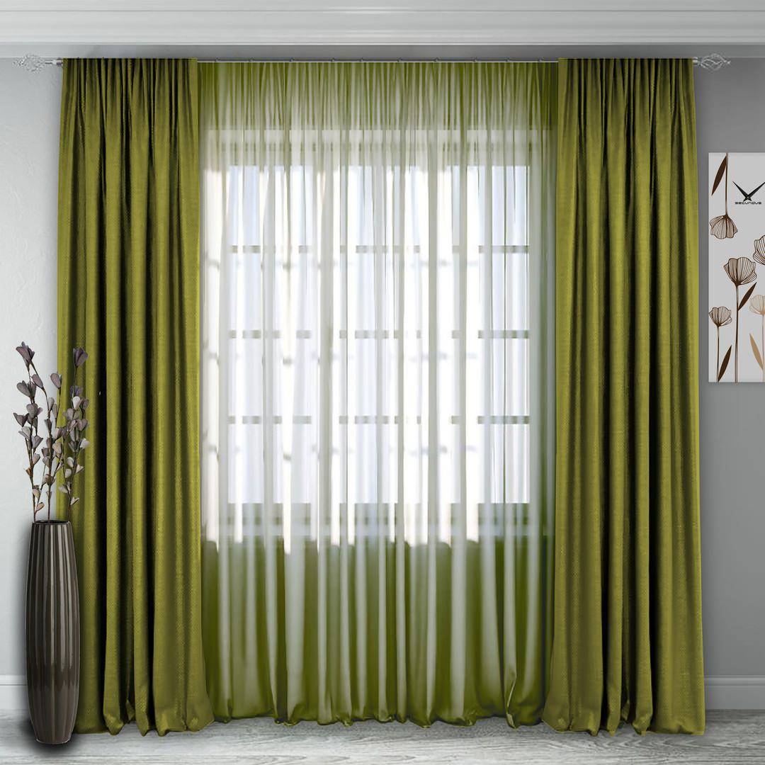 Актуален в настоящее время однотонный тюль нежных природных оттенков — оливкового, персикового, фисташкового, травяного, желтого и так далее. Очень модно сейчас сочетать два цвета одновременно, делая плавный переход.