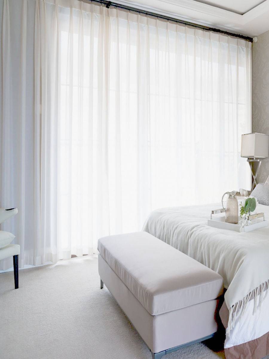 Создайте тонкий и нежный декор в спальне благодаря тюлю. Используя ткань, характеризующуюся воздушностью, вы можете экспериментировать с длиной, обогащая интерьерные композиции нежным оформлением.
