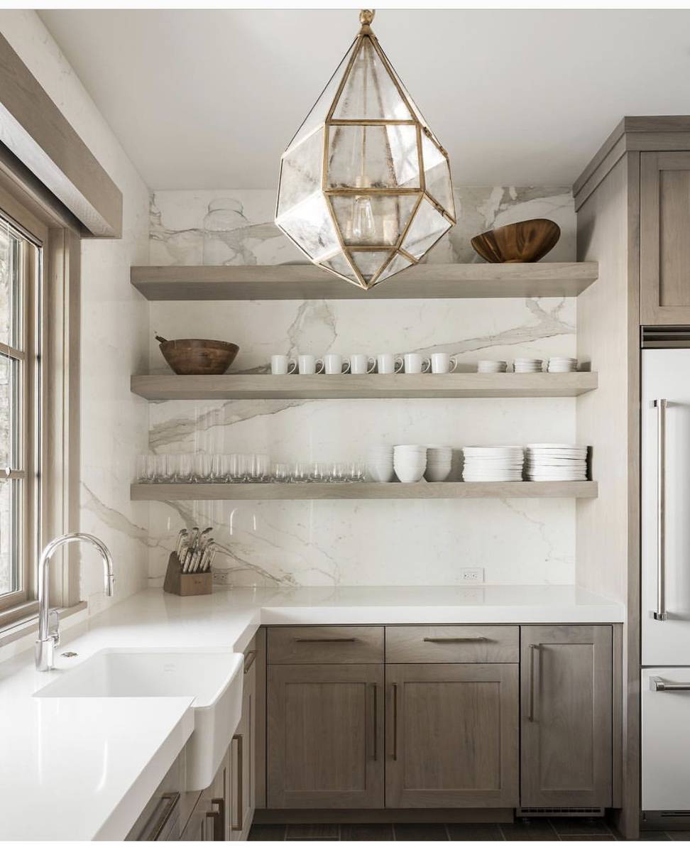 Минимализм. Этот стиль великолепно смотрится в квартирах-студиях и подходит для тех, кто не любит излишнего декора, выставленной напоказ посуды и прочей мишуры.