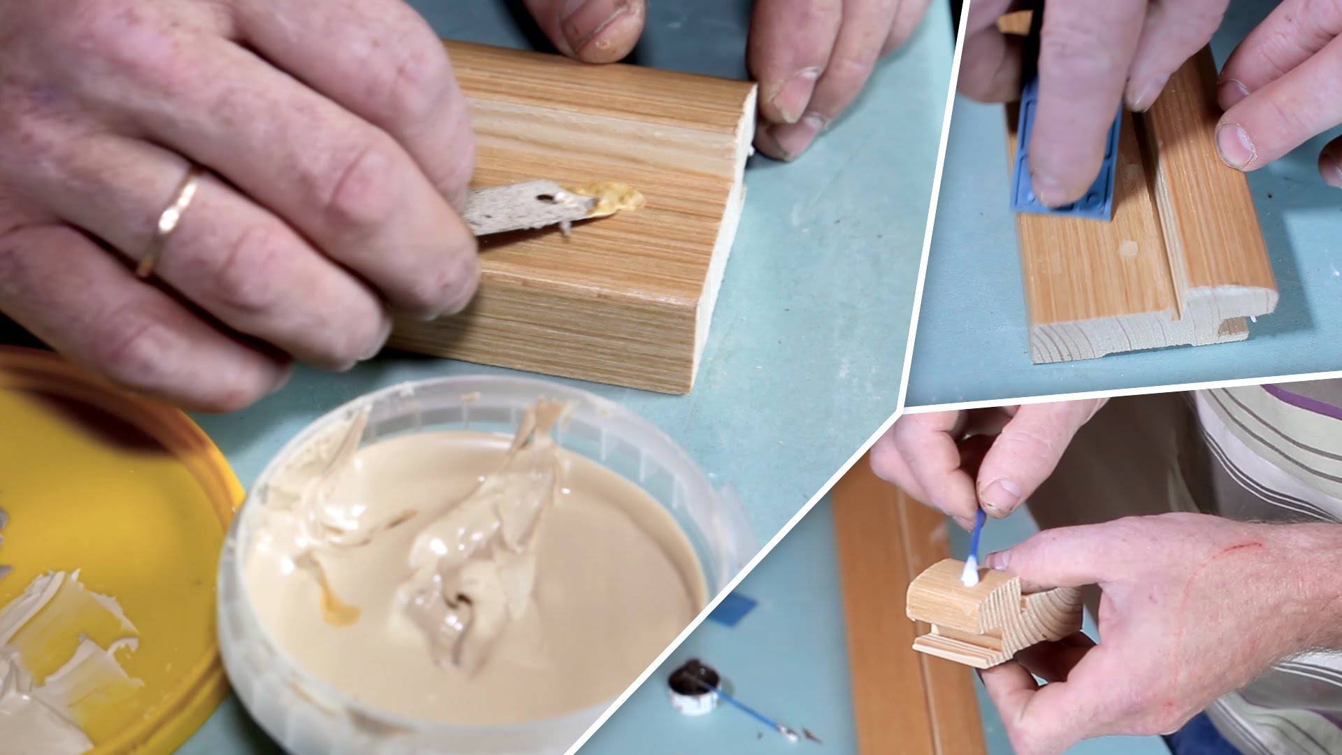 Нитролак дольше служит на деревянных украшениях. Идеальную глянцевую поверхность создает шеллак. Тонирующий лак сделает светлое дерево на несколько тонов темнее. Воск защищает поверхность, придает блеск и оттенок. Специальные тонирующие и прозрачные пропитки подчеркивают структуру дерева или имитируют дорогие породы на деревянных поверхностях. Самый прочный — корабельный лак.