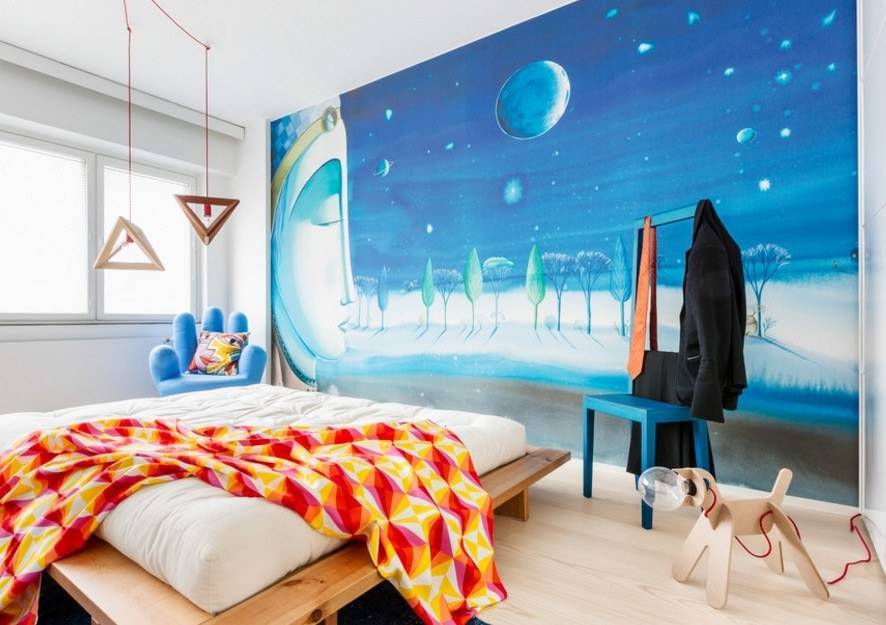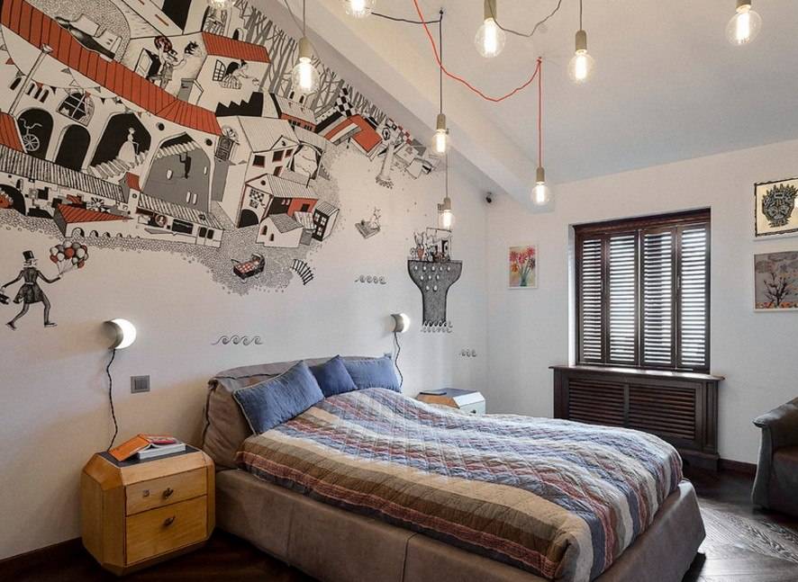 Стенная роспись варьируется в широком спектре художественных стилей – от примитивно-анимационного граффити до настоящих произведений искусства. Любая роспись стен органично вписывается в общее пространство с мебелью, текстилем, декоративными деталями, если оно не захламлено и не загромождено излишними элементами и предметами обихода.