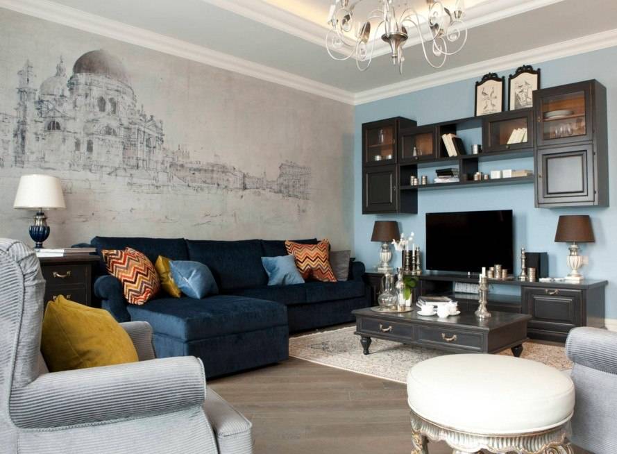 - классический. Данный стиль всегда остается модным и востребованным. Среди его основных характеристик можно выделить сдержанность, гармоничность, простоту линий и симметрию. Рисунок, выполненный в таком стиле, придаст интерьеру благородность и стиль. Он станет отличным украшением гостиной, спальни и коридора. При этом классический стиль отлично сочетается с современными или нестандартными элементами, позволяя сохранить общий стиль интерьера;
