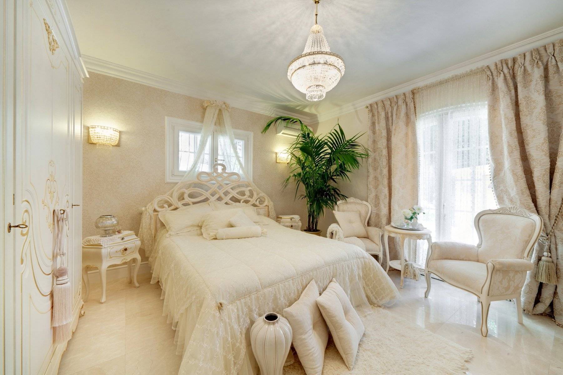- В бело-бежевой спальне стоит позаботиться о ярком, белом свете.