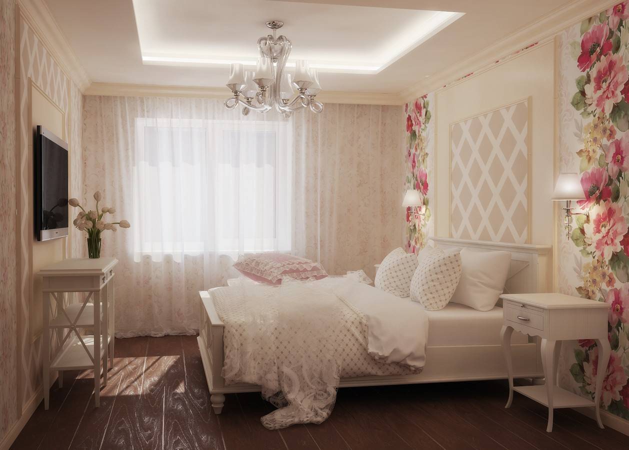 Также вы можете оформить спальню в бежево-серых тонах в романтическом стиле. Здесь незаменимы светло-бежевые стены и светлый деревянный пол. На окнах белые, воздушные, светлые, длинные шторы и серые, такие же длинные шторы. Белые комоды могут стоять у стен, а над ними могут висеть картины в черных тонких рамах. Не забудьте и о белой кровати с декоративным металлическим или деревянным каркасом.
