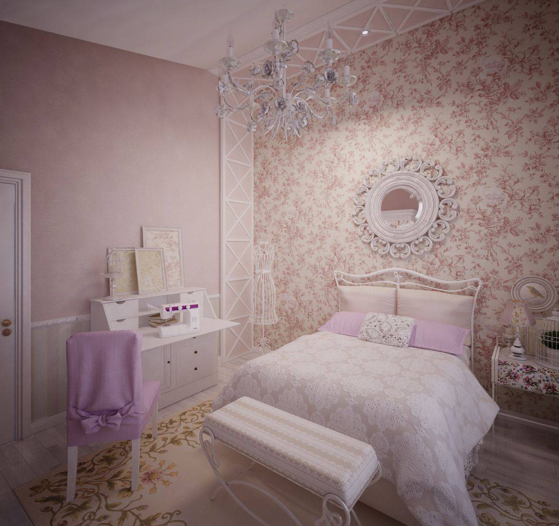 Поверхности стен предпочтительно декорировать в шоколадных тонах, а мебель подобрать светлую, например, белоснежную. Покрывало и занавески подойдут светло-розовые.