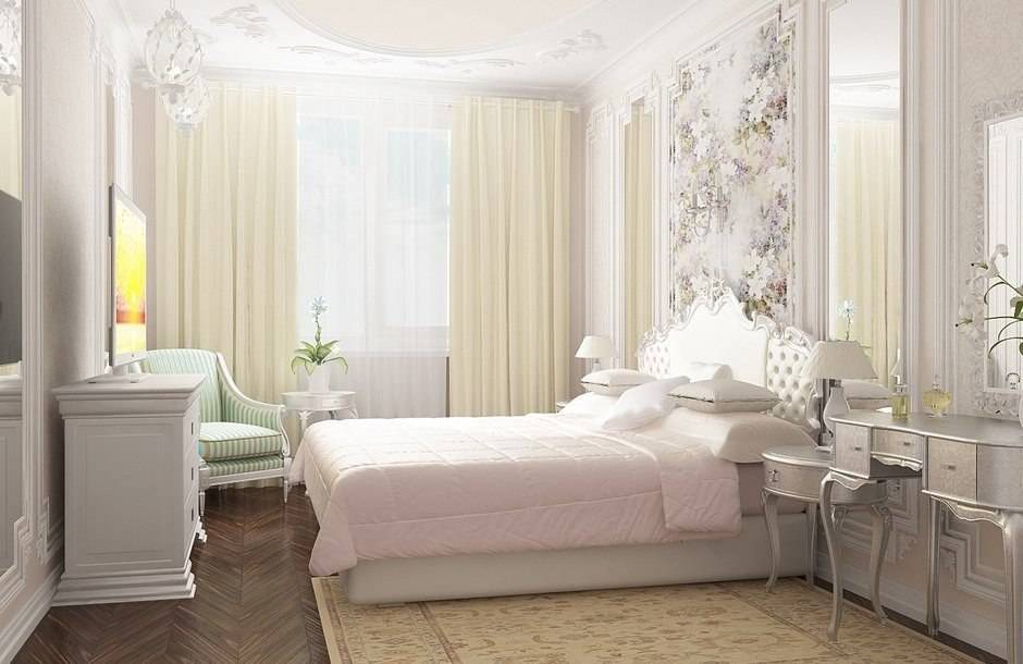 Белый и бежевый цвета в спальне создают чрезвычайно элегантное сочетание и в то же время источают классику, умеренность и элегантность. В таких расстановках стоит тянуться к белой мебели, которая будет стоять на фоне светло-серой или светло-бежевой стены. На стенах в таких тонах отлично будут смотреться картины в белых рамах.