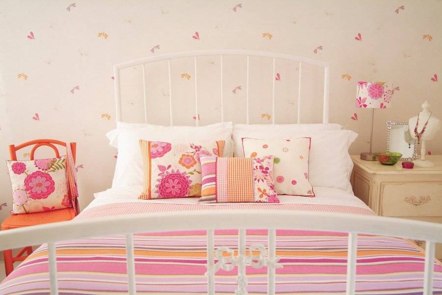 Чего только стоит образ восхитительных божьих коровок на зелёненькой лужайке, уютных засыпающих домиков, цветущих растений. Салатными, лиловыми текстильными изделиями, покрывалом с динамичным цветом или лоскутным шитьём кардинально меняют комнату.