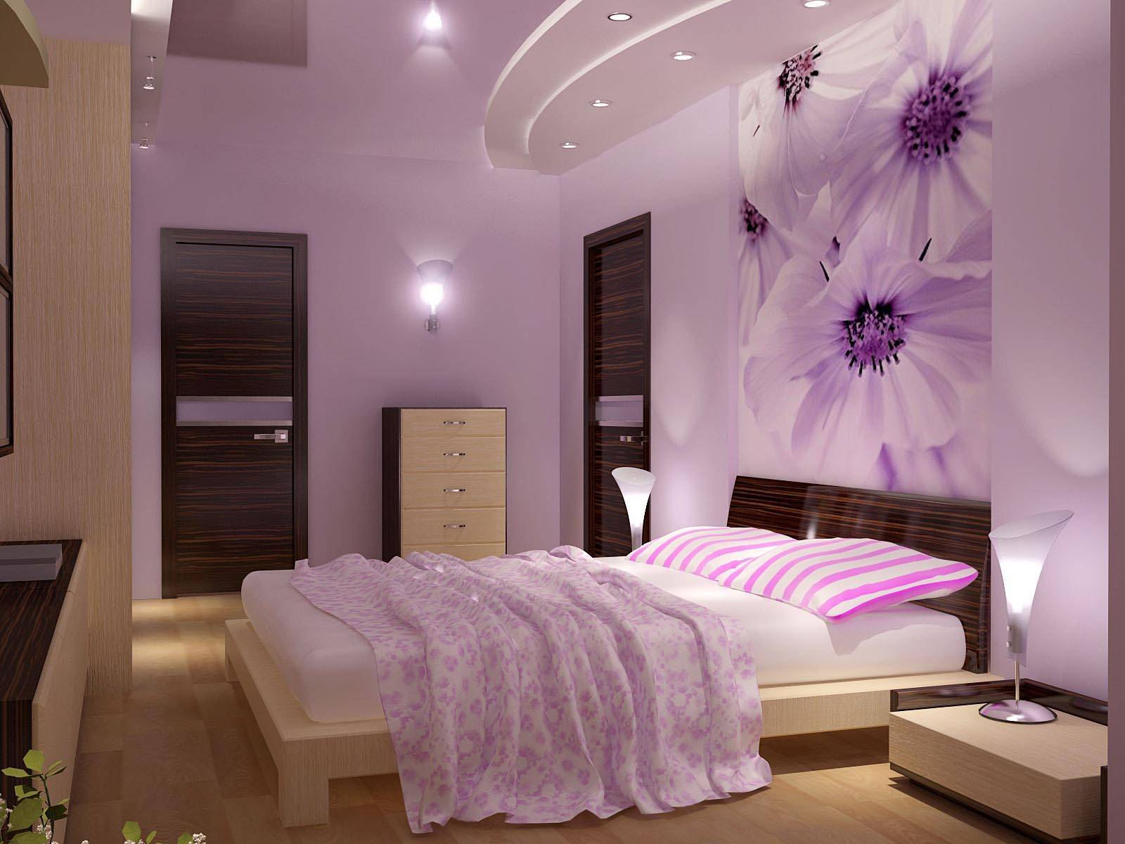 Розово-фиолетовый альянс подойдет для спальни с окнами, выходящими на юго-восточную или южную сторону.