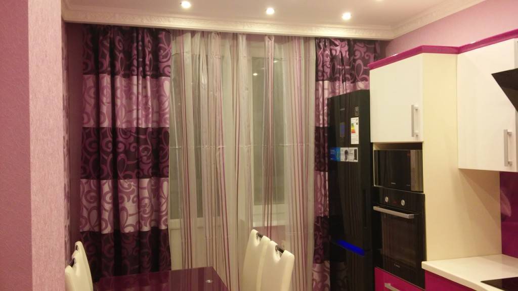 Что касается цвета портьер, то для кухни больше подойдут нежные пастельные тона (пудровый, бежевый, светло-розовый). Шторы должны гармонировать с общей обстановкой кухни, подчеркивая все ее особенности.