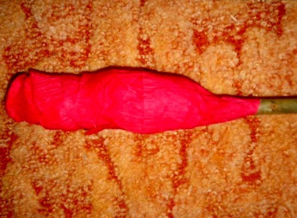 - Обмотать стебель полосками бумаги сверху до самого низа, смазывая их клеем.