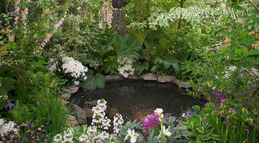 Живописно смотрится оформление берега садового пруда папоротниками — при условии, что водоем расположен в тени или полутени. Из папоротников высаживают:
